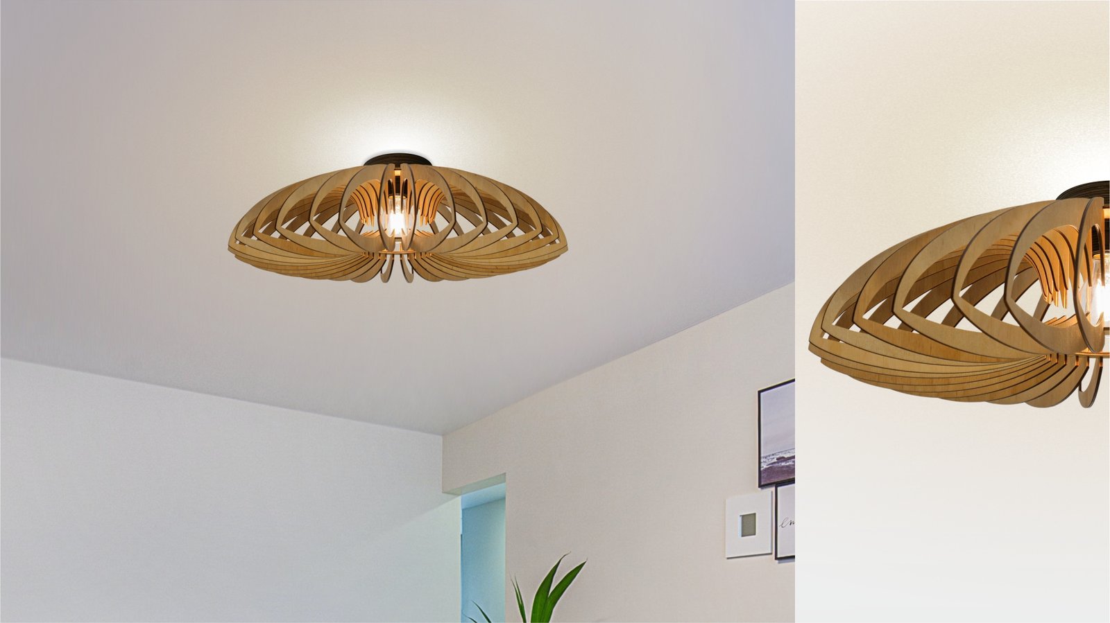 Lotus Flush mount wood ceiling light
