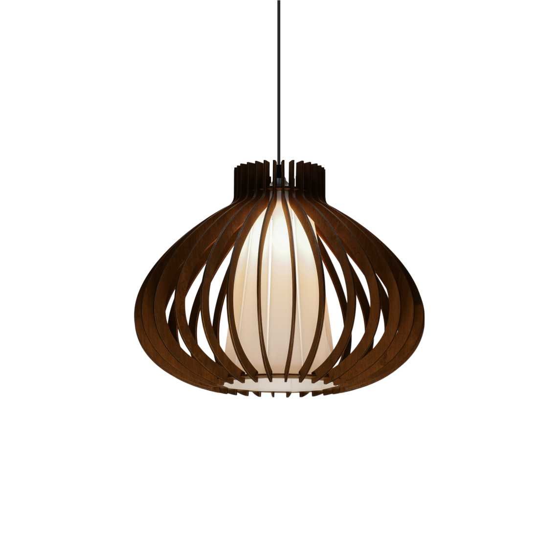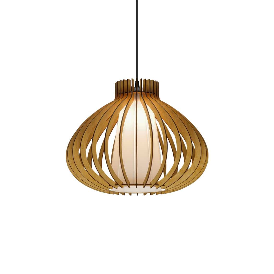 Varnished plywood pendant lamp provides cozy and pleasant light in your house, office or even a restaurant.