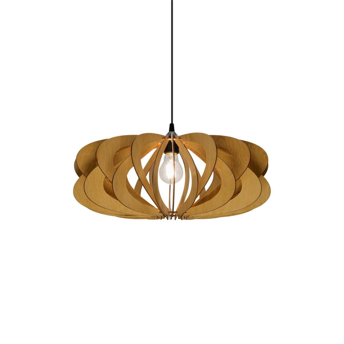 Varnished plywood pendant lamp provides cozy and pleasant light in your house, office or even a restaurant.